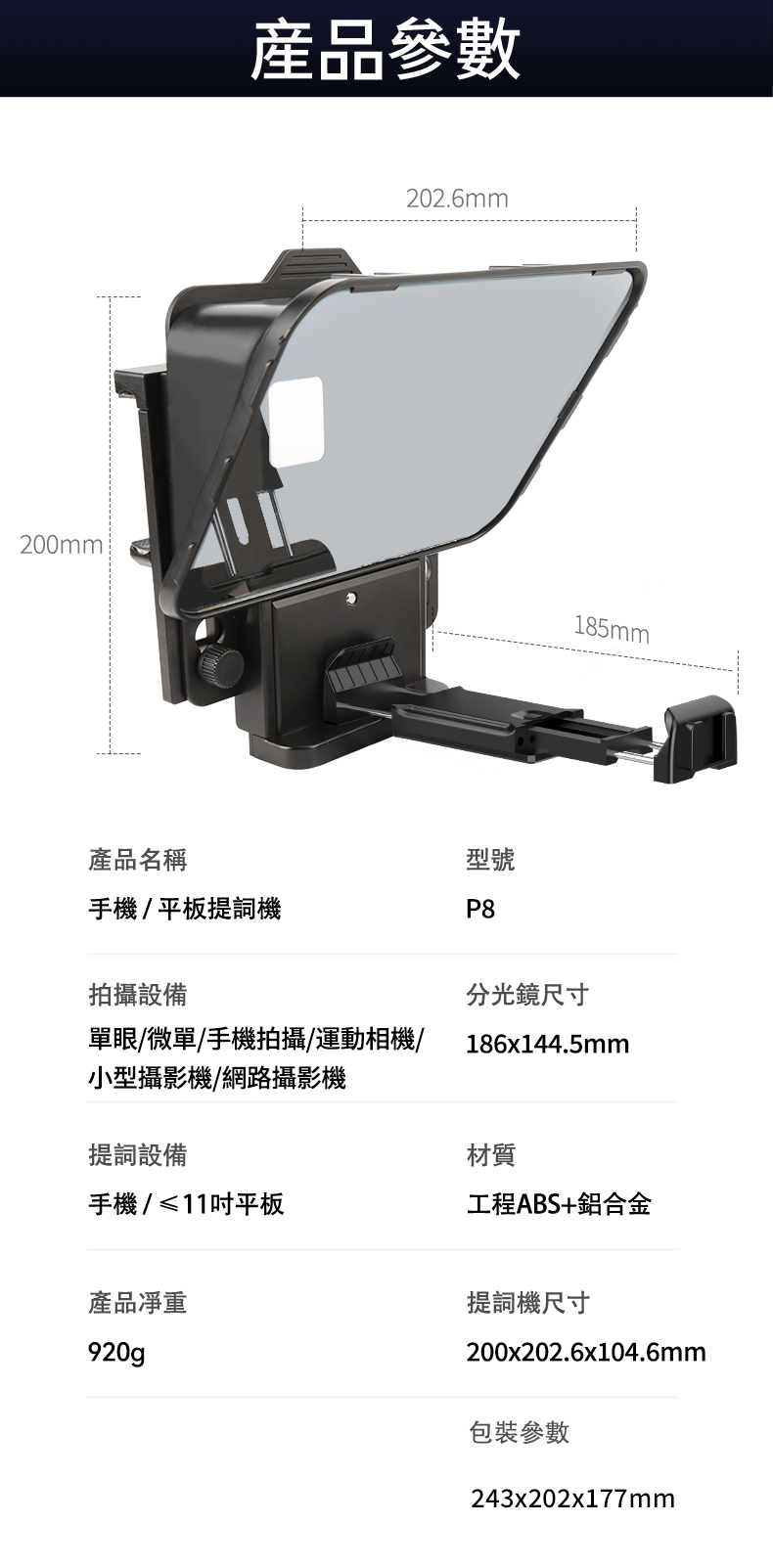 ■ 手機 / 平板提詞,支援最大 11 吋平板